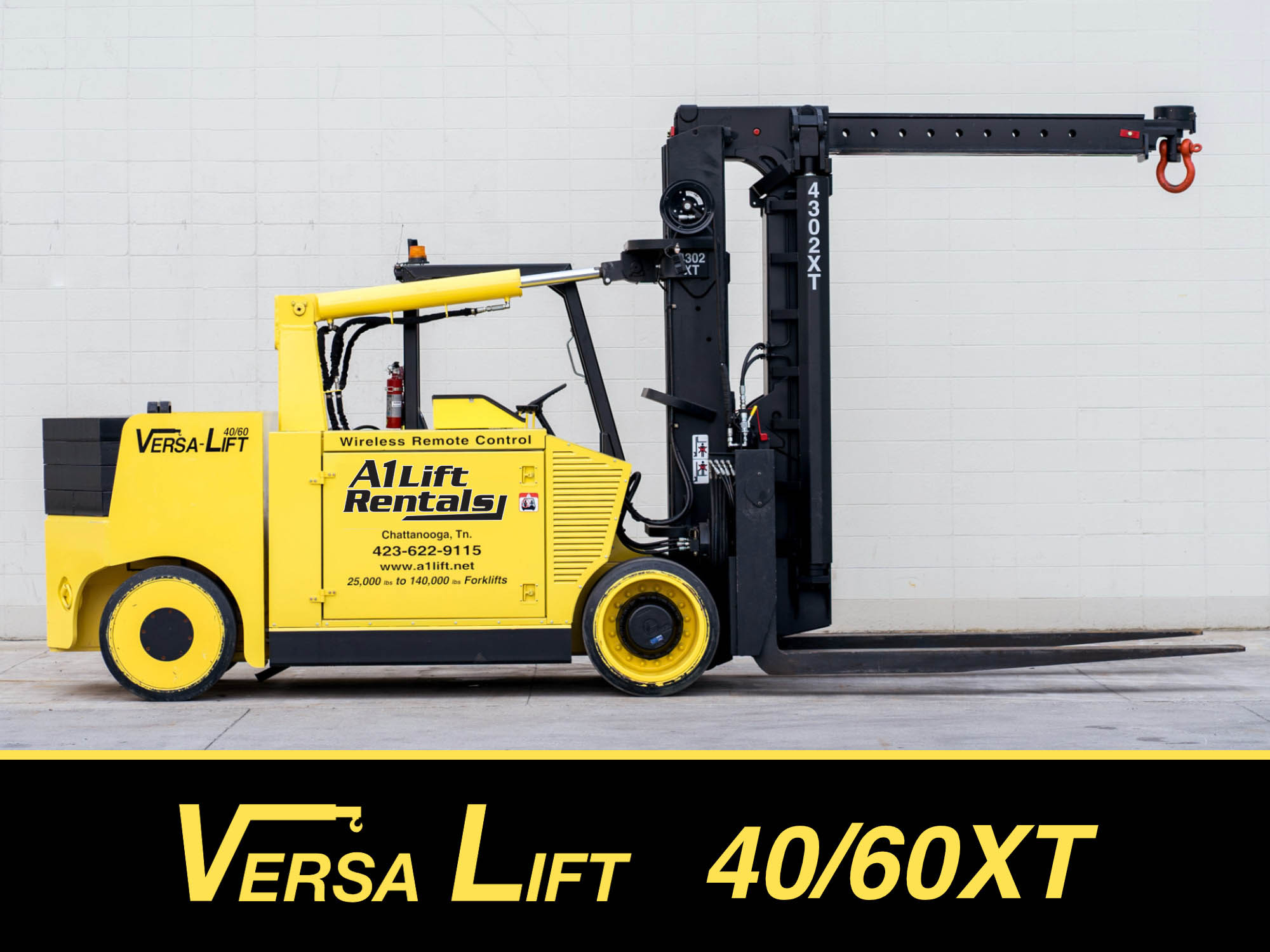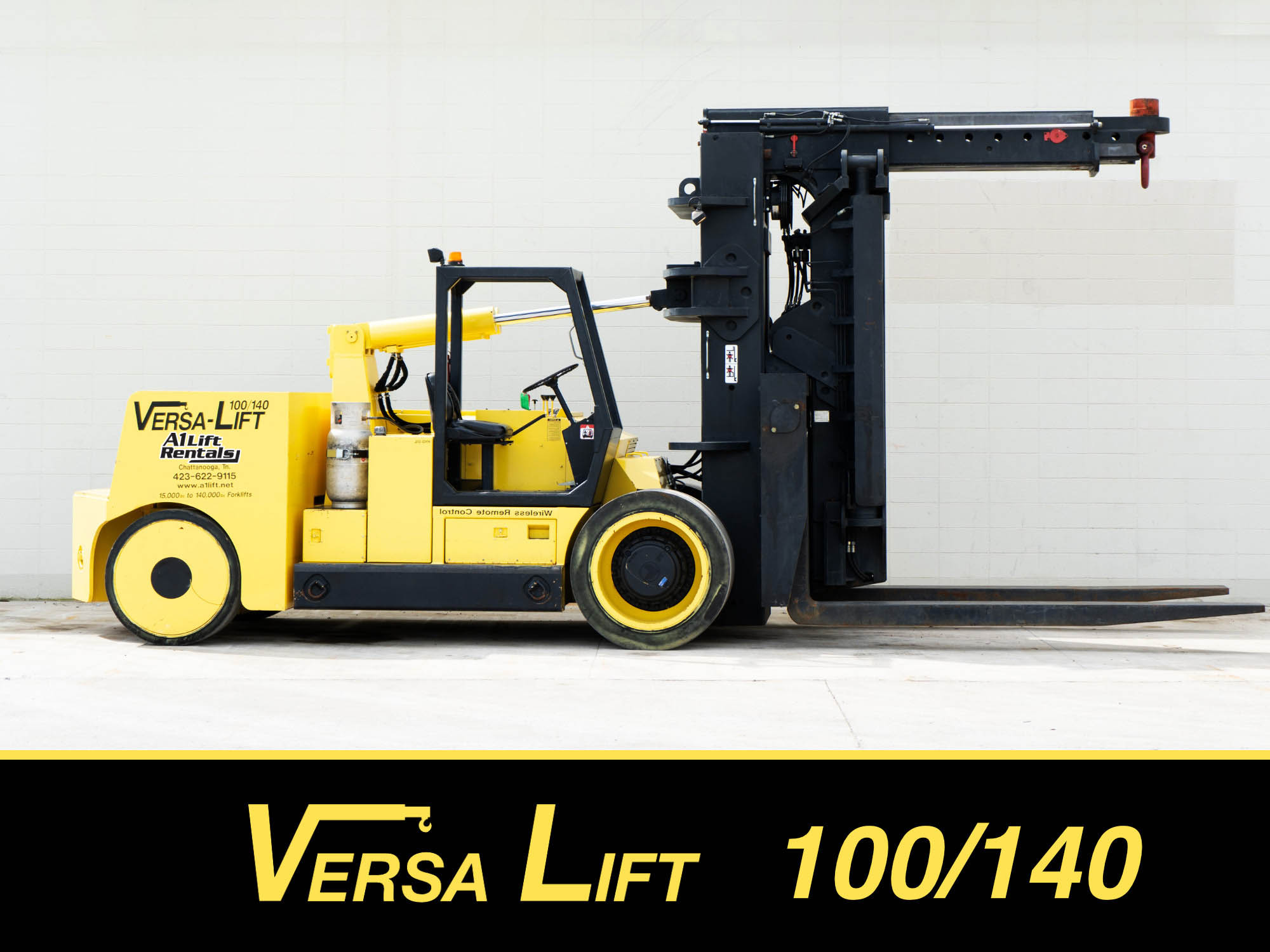 A Versa-Lift is a unique heavy duty forklift. Unlike conventional forklifts, the frame of the Versa-Lift extends, allowing it to achieve greater lift capacity. In addition, the Versa-Lift Forklift is equipped with a removable hydraulic boom, giving it crane capability. No other forklift can provide this level of flexibility.